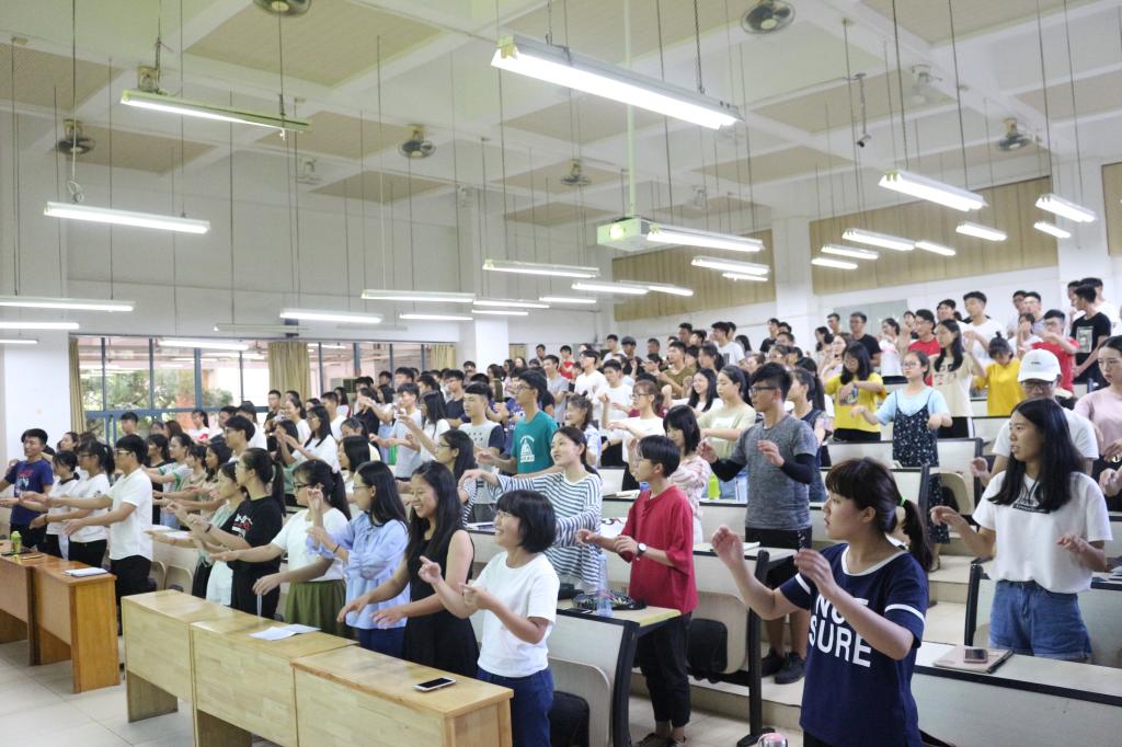 首先,谢国栋老师简要地讲解了校歌的创作过程和创作背景,对2017年校歌班呼比赛、班级班呼创作和校歌班呼展演做了说明,并现场解答了同学们的疑问。